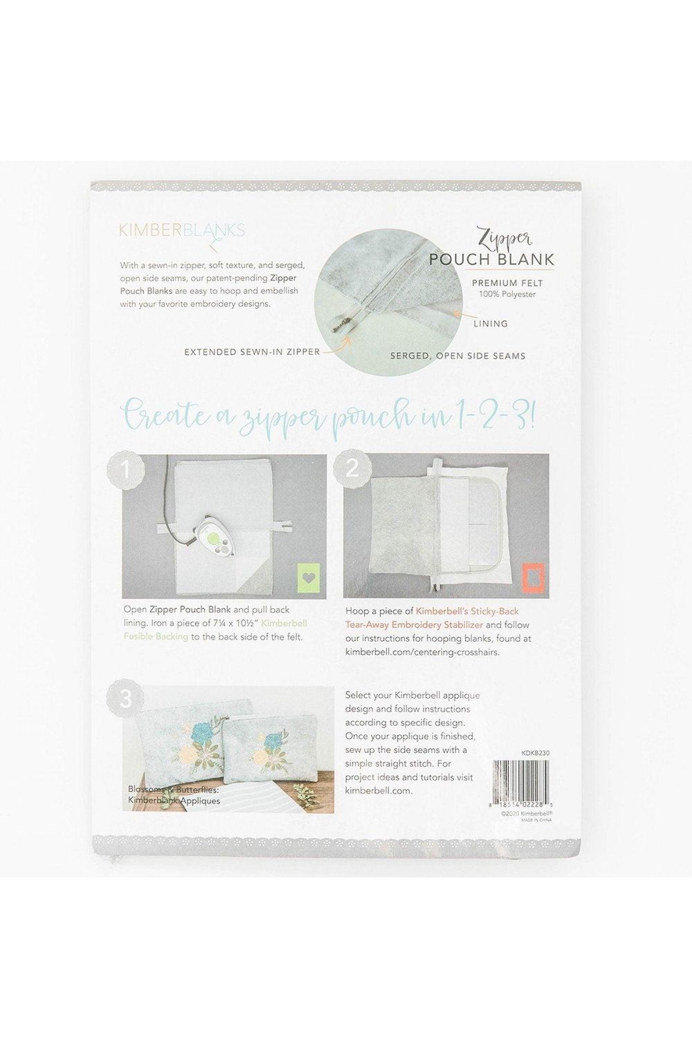With a sewn-in zipper, soft texture, and serged, open side seams, Kimberbell’s patent-pending Zipper Pouch Blanks are easy to hoop and embellish with your favorite embroidery designs!