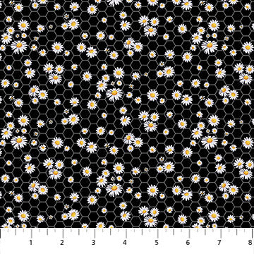 Lavender Market Mini Daisy Black (Sold By 1/2 Meter)