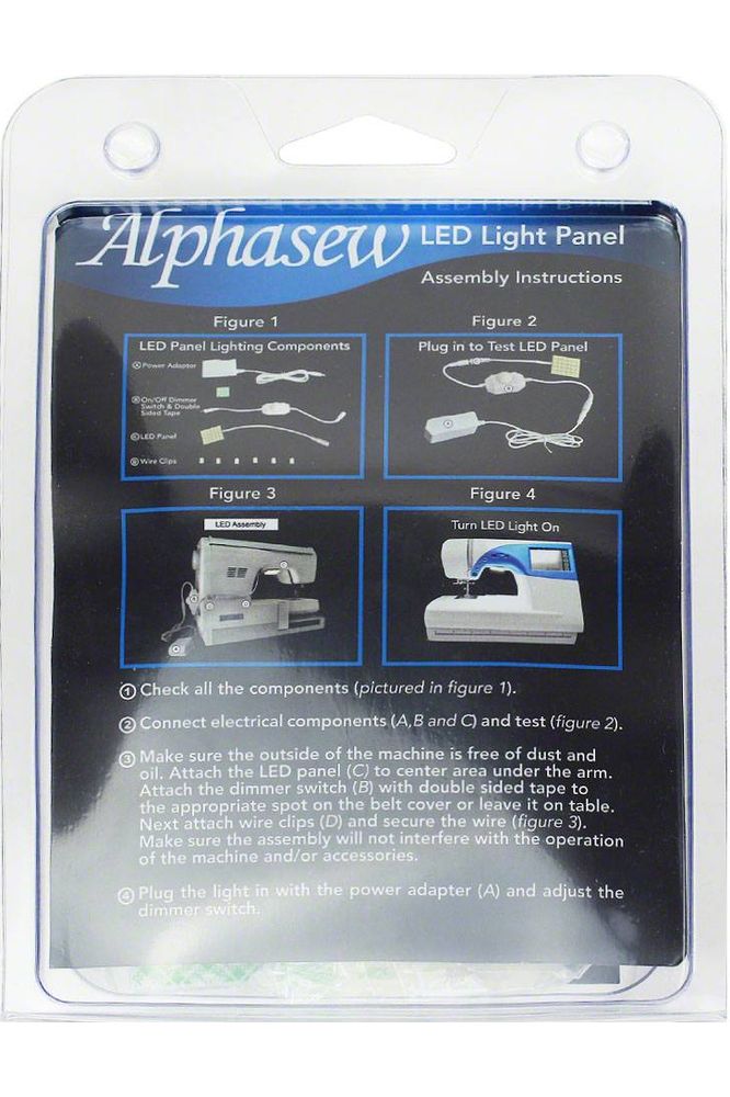 Add this bright, white LED light panel to your sewing machine or serger to enhance sewing visibility. The small panel features a self-adhesive backing and 30 individual LEDs. There is a dimmable on/off switch to give you flexibility on how much light is put out. The included hooks and self-adhesive tabs allow you to position the light kit and wiring wherever you like for a truly customizable, clean, and neat crafting area. The light panel measures 1 3/4 inches by 1 1/2 inches.