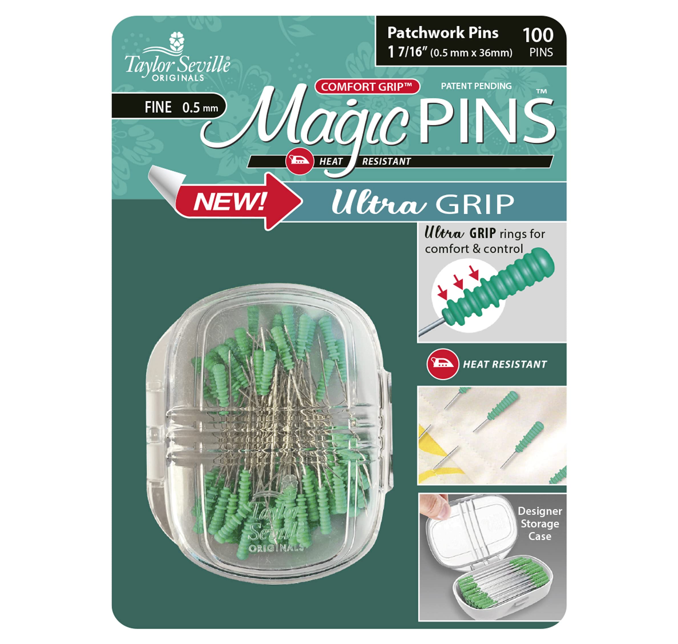 Upgrade your sewing game with Magic Pin Ultra Grip Patchwork Fine 100pc. These heat resistant pins feature ultra grip rings for precision and ease of use. With a designer storage case, you won’t lose any pins. Taylor Seville Originals Notions – making sewing life easier.