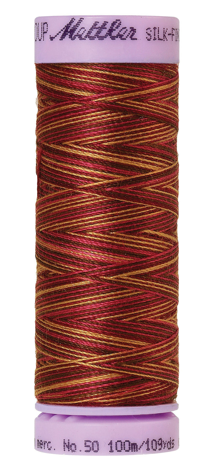Mettler Silk-Finish 50wt Variegated Cotton Thread 109yd/100M Mocha Cherry