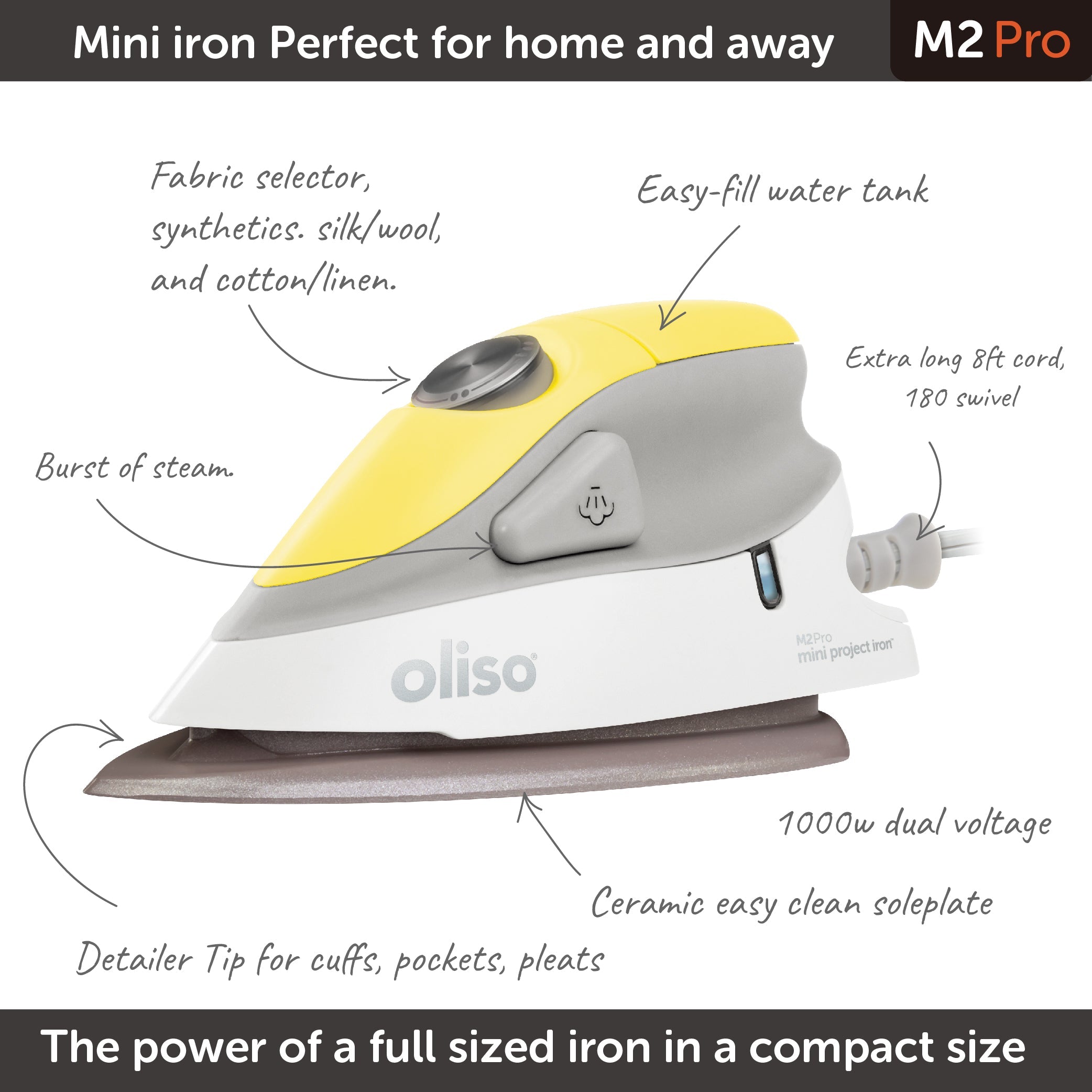 With the power of a full sized iron in a compact and lightweight design, the oliso project iron fits right next to your sewing machine or in your travel bag. The oliso project iron comes with a solemate so you can leave your oliso project iron in the face down position. The solemate also protects and allows you to store your oliso project iron easily and safely. The oliso project iron fits snugly into the palm of your hand and has been weight-balanced for precision movement and minimal strain on your wrist. It features a Diamond Coated Ceramic sole plate, flat pressing surface, detailer tip, and a 8-foot cord for full range of motion.