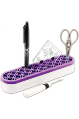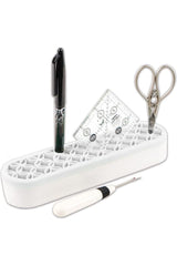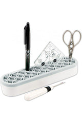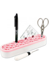 The Stash n Store Organizer is the perfect tool to keep your notions organized. This handy storage device fits easily on any surface or workstation. The silicone interior features large and small pockets that stretch to accommodate a variety of notions and can be easily cleaned. Multiple colors available: Aqua, Gray, Mint, Navy, Pink, Red, Purple, White, and Lime.
