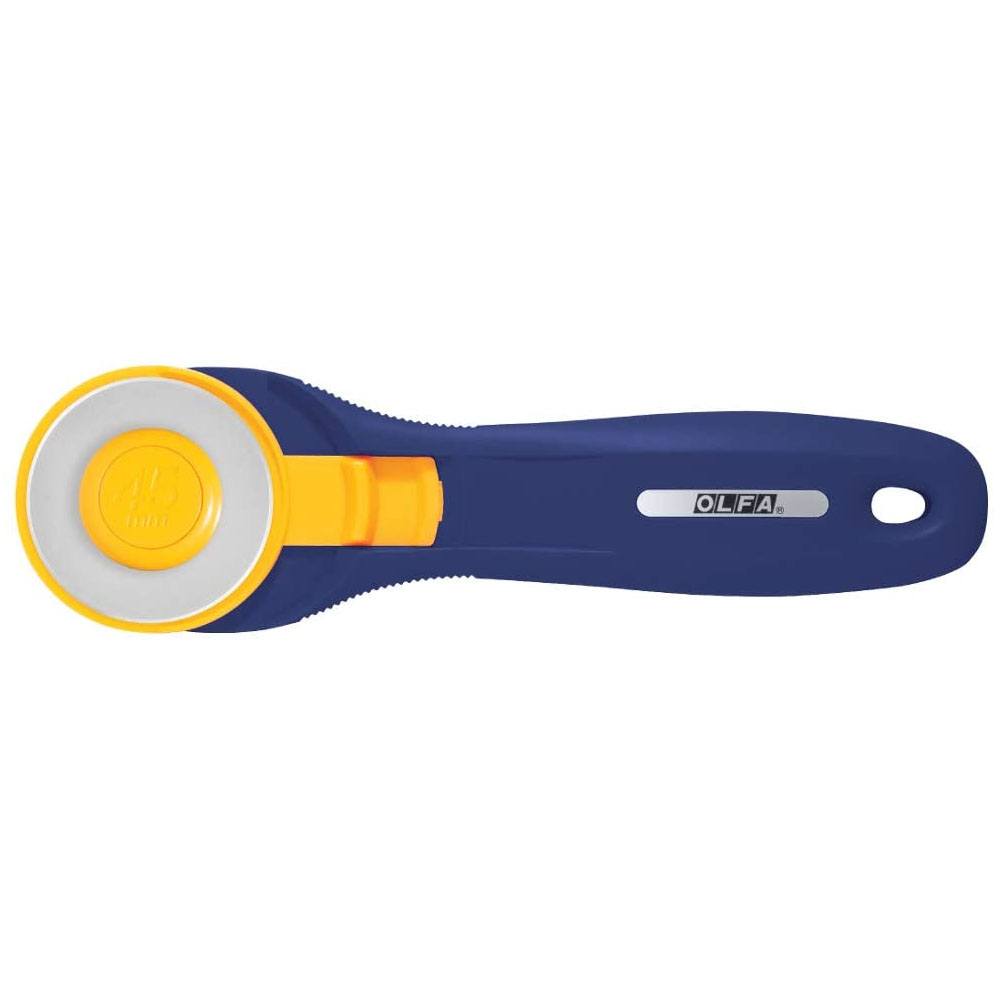 Precision with pizazz! Olfa's 45mm Splash Rotary Cutter was designed with cutting in mind. The ambidextrous design makes cutting a breeze.