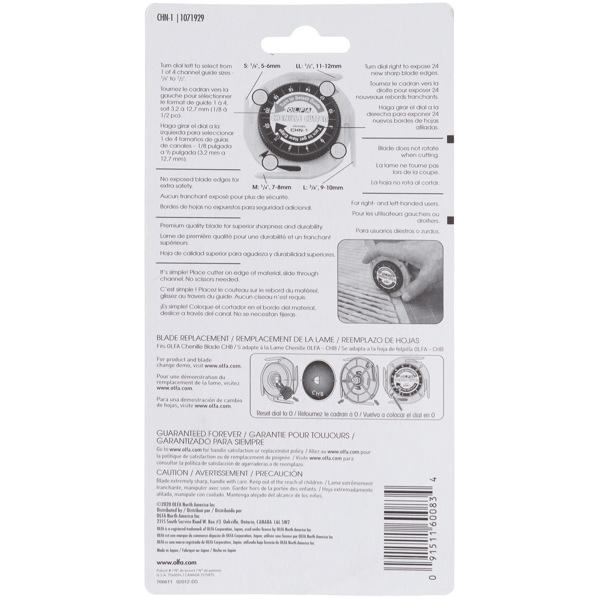 Create your own chenille fabric - easily cut multiple layers of fabric to add texture and dimension to any project! Features 4 channel guide sizes for narrow to wide widths (1/8", 1/4", 3/8" & 1/2"). Long lasting, ultra sharp, double honed edge blade made from high quality tungsten carbide tool steel.