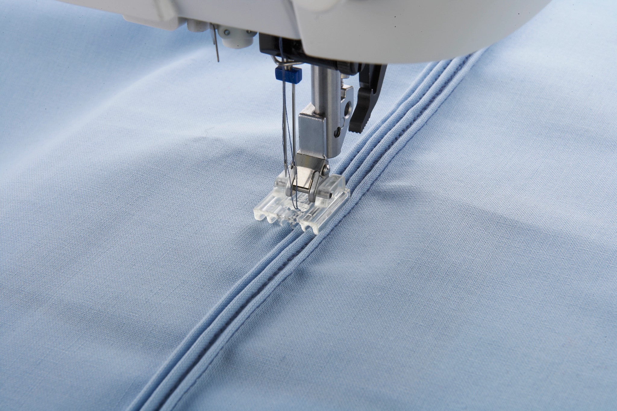 You can easily use the classic Pintuck Foot on cotton, light-weight wool or other fine fabrics. Create pintucks to add a nostalgic touch to linens, cushions, blouses or children‘s clothing.