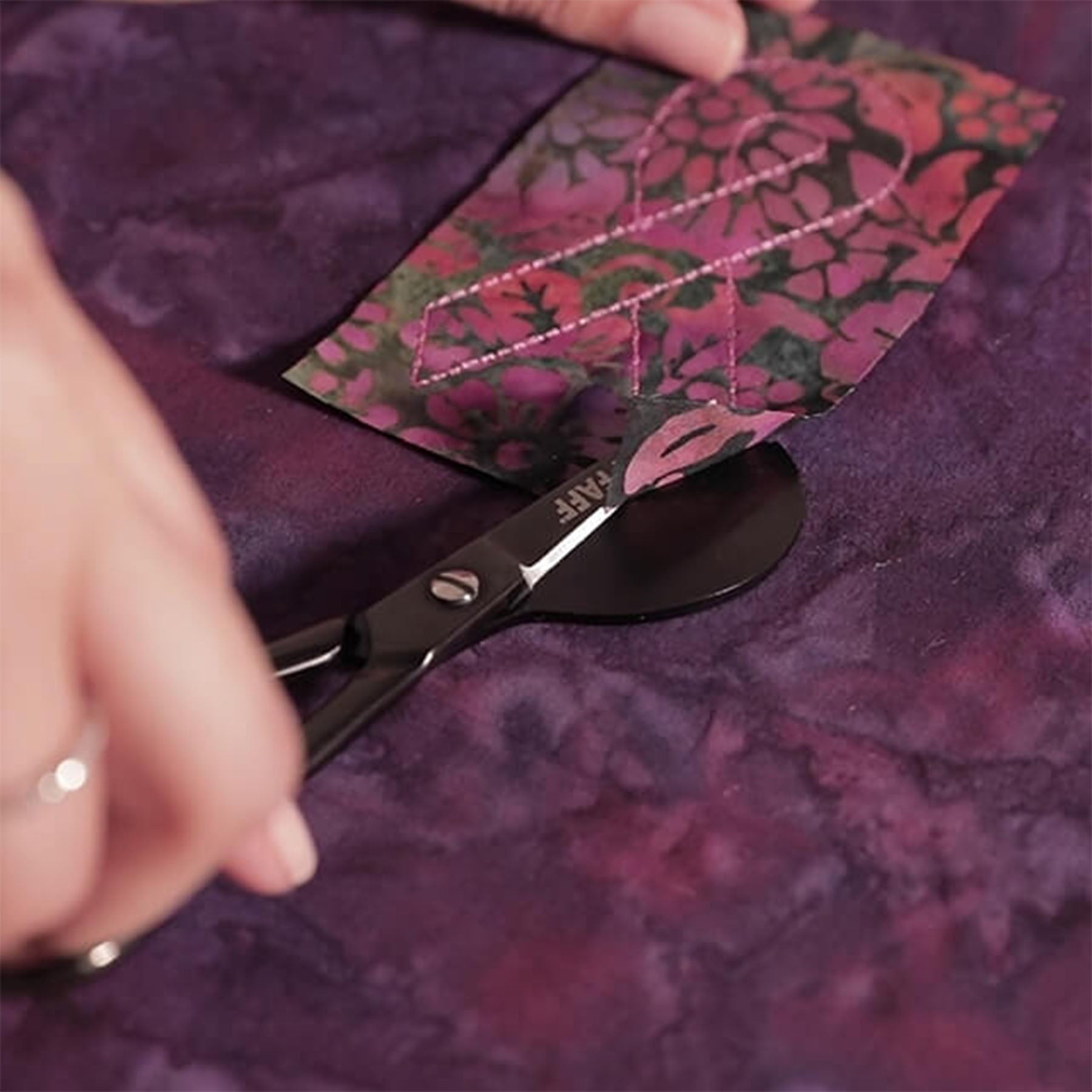 Paddle-shaped blade is ideal for trimming appliqués and stabilizer. Trim around edges and close to seams with precision and ease.