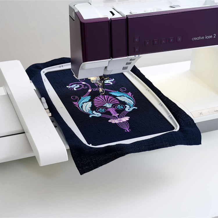 With the creative™ hoops from PFAFF®, you can expand your embroidery machine’s potential and achieve the most professional results. All designs will be perfect, no matter what the size. Create beautiful embroideries up to 360 x 200 mm in size with the creative™ Deluxe Hoop.