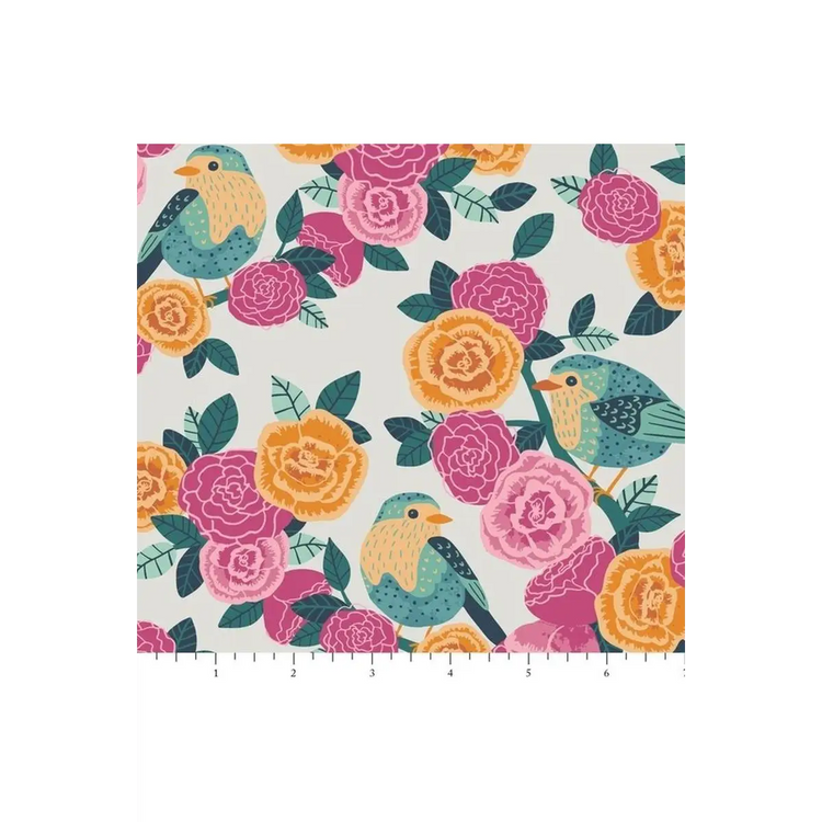 Phoebe Fabrics, Bird & Bloom, Bird Bouquet - PH0160 (Sold By 1/2 Meter)