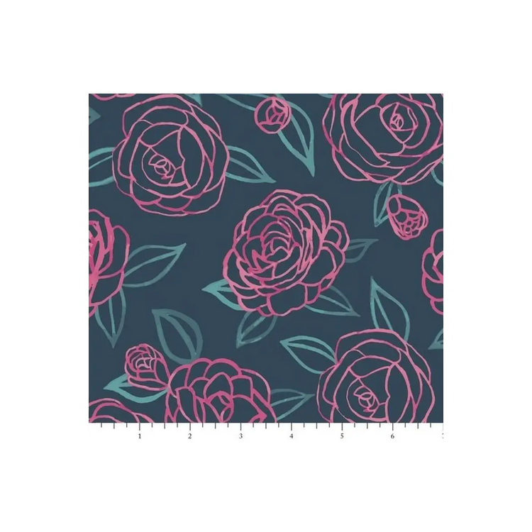 Phoebe Fabrics, Bird & Bloom, Camellia Bush - PH0161 (Sold By 1/2 Meter)