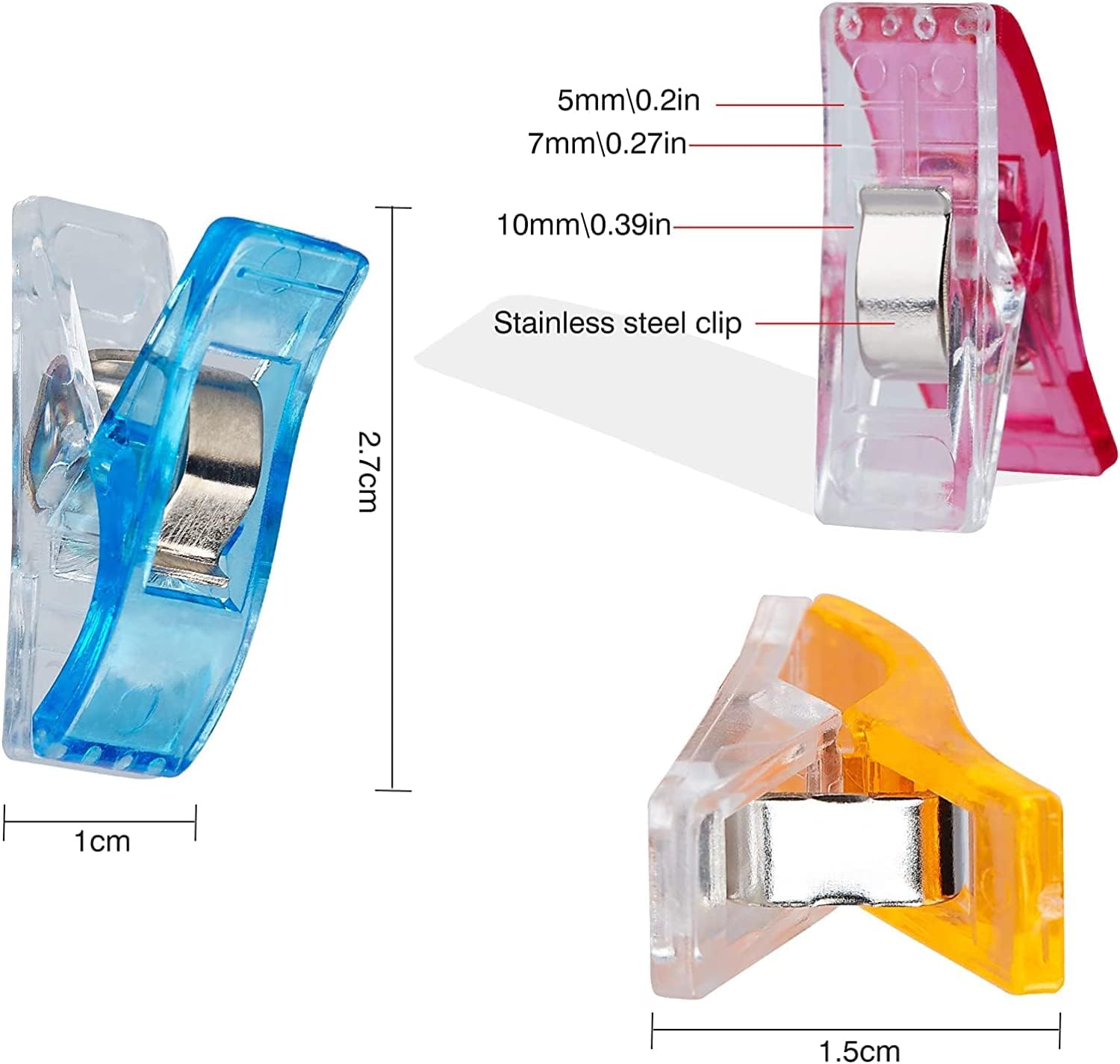 QMay Sewing Clips, 100 Pcs Premium Quilting Clips - Random Color, 27x15x10 mm