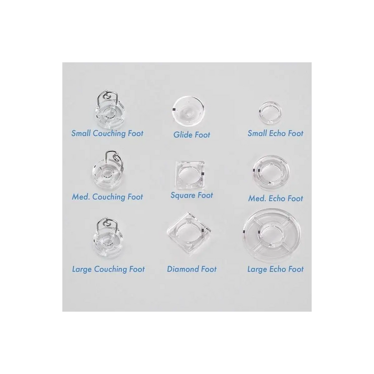 Un ensemble de 9 accessoires de pied sautillant pour machine à quilter Q'nique. Disponible pour les bras moyens Q'nqiue 15 ou pour les bras longs 21. Fixez l'un de ces outils au pied sautillant inclus pour créer de superbes motifs de quilting ! Chaque ensemble comprend un ensemble de pieds couchés pour le fil, un pied coulissant pour faciliter le quilting en mouvement libre, un ensemble de pieds en écho et différents pieds à utiliser avec des règles.