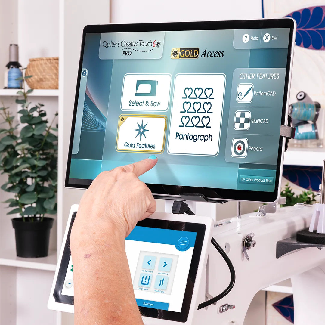 Take QCT6 a step further with Gold Access. This key unlocks additional benefits and powerful features beyond even QCT6 PRO. Gold Access allows you to take your quilting to an entirely new level with exclusive creation tools and features, advanced pantograph control, font stitching, and more! Please note that purchasing and activating a Gold Access Card unlocks all Gold Access benefits for one year. You can always get another Gold card at any time, which will add an additional year to the time of your Gold Access. If your Gold Access expires, you will lose access to Gold-Only features and benefits until you activate a new Gold Access Card. Please note that for QCT6 Gold Access to work, you must buy or already own QCT6 PRO.