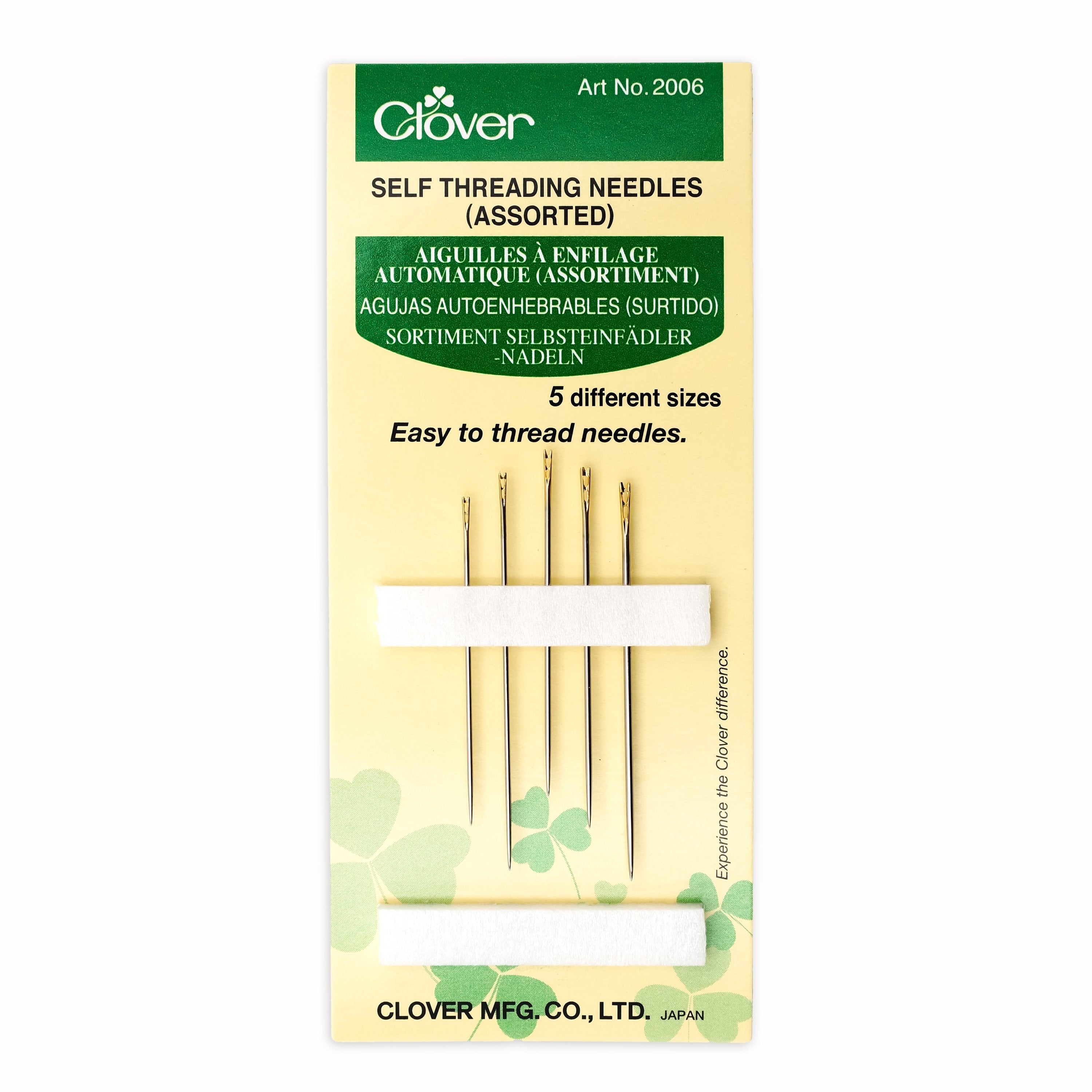 Simply place the thread at the top of notch of the needle and then by pulling it down; the thread will go through the eye of the needle. 5 needles/package.