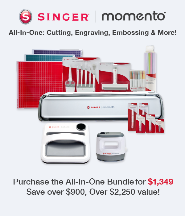 Jumpstart your creative journey with the SINGER® MOMENTO™ Getting Started Bundle! This all-in-one set includes the powerful MOMENTO™ 24" cutting machine, essential heat presses, premium tools, and a variety of materials to bring your ideas to life. From precision cutting to flawless heat transfer, this bundle has everything you need to craft with confidence.
