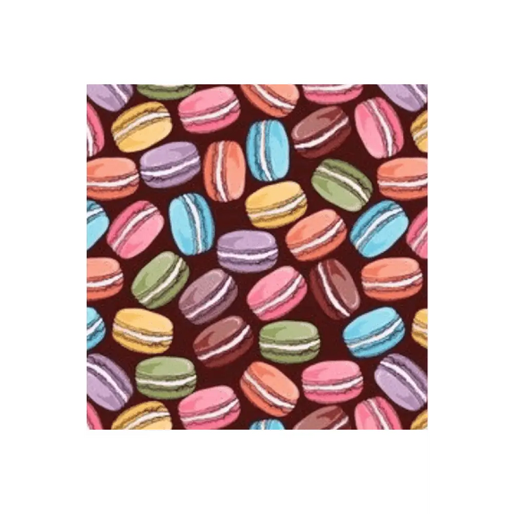 xMinuscules macarons sur fond marron chocolat profond