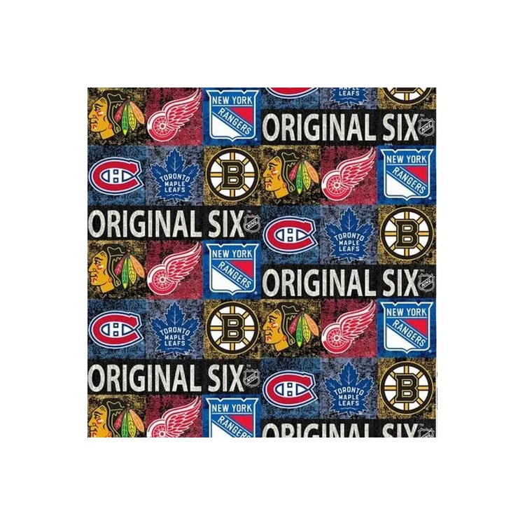 NHL-Original Six Logo vieilli sur toute la surface en coton