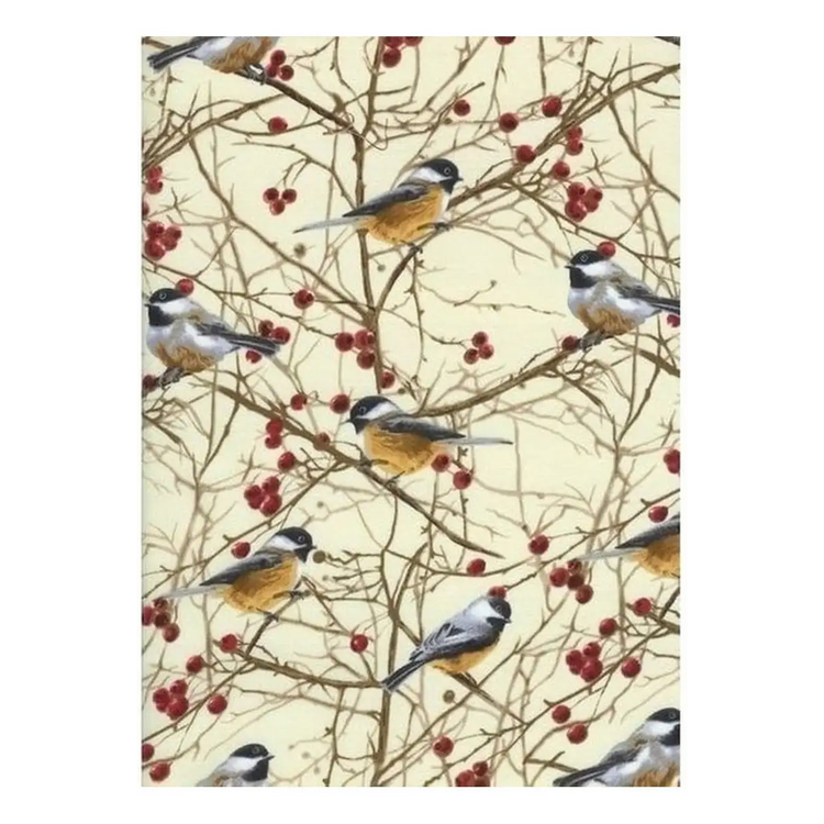 Fabric, Happy Camper Chickadees Cream - Timeless Treasures