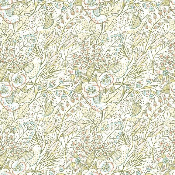 Whimsy Cream Yardage showcases delicate florals and playful birds on a creamy white backdrop. From In the Beginning Fabrics, this collection adds a touch of whimsy to any project. Imagine the possibilities with these colorful and fun designs straight out of a fairy tale.