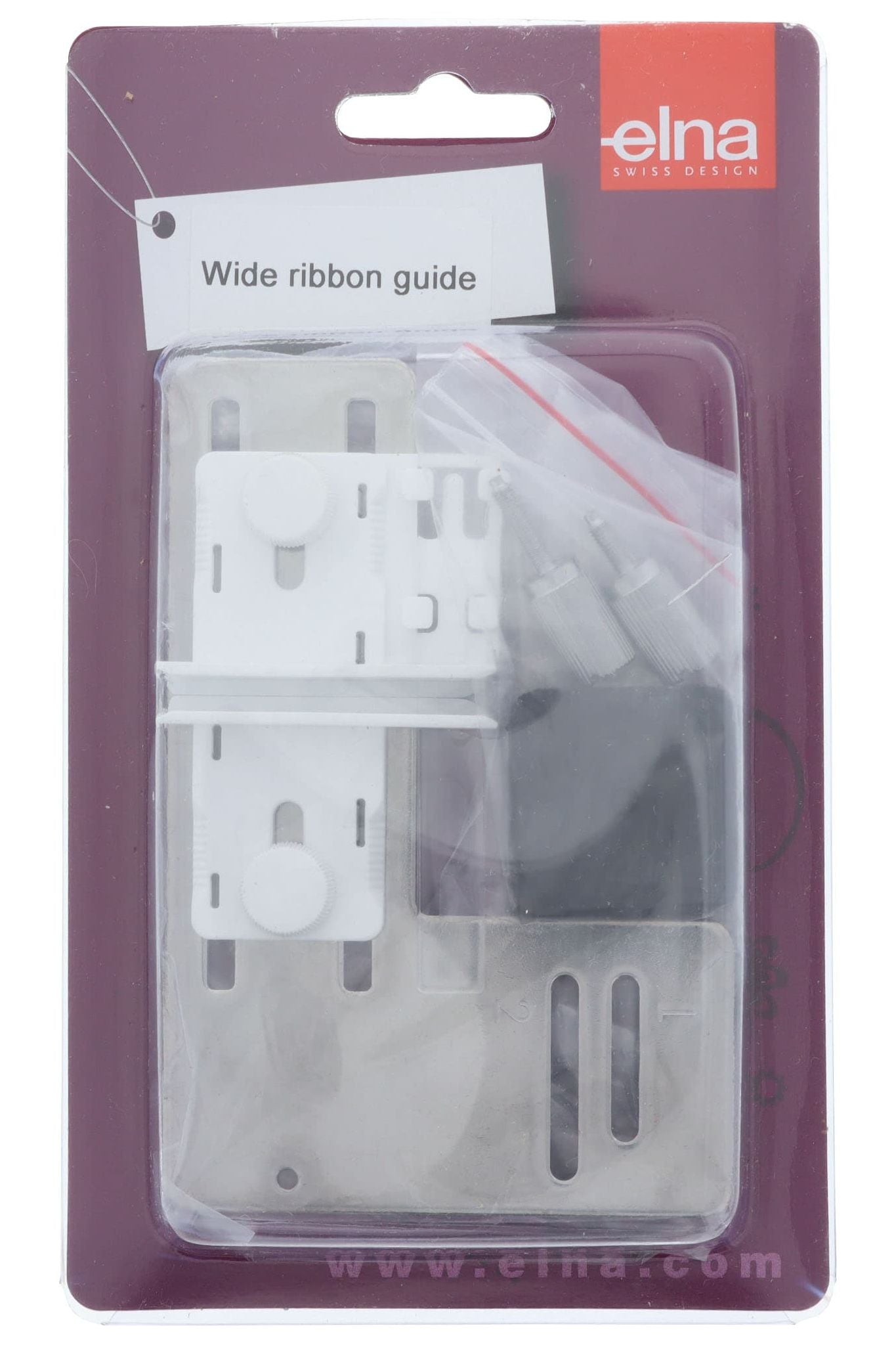 The Wide Ribbon Sewing Guide allows you to add a special touch to your project by adding decorative stitching or lettering. This foot can be helpful for embellishing quilts and apparel, scrapbooking decorations, or decorating a special gift. This foot allows you to create original ribbons by adding decorative stitches up to 25mm wide.