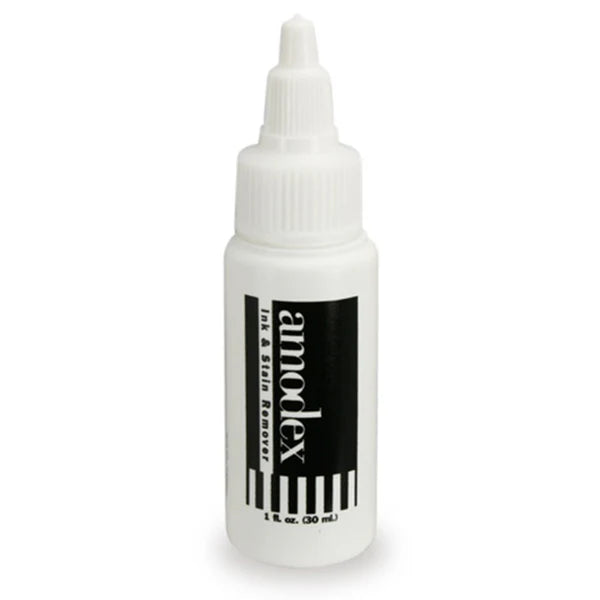 AMODEX Ink & Stain Remover - 30ml (1oz) - 1 pc. Amodex was originally formulated in 1958 to remove inks, dye and other troublesome stains from hands and was found to be equally effective removing stains from fabrics, household stains such as food (mustard, ketchup, wine, tomato sauce, salad dressing, etc.) blood, grease, grass and more. Its unique cream formula is non-toxic and safe to use on fabrics, upholstery, carpeting, and even skin.