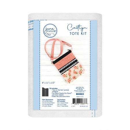 This cross-body style bag features a large zipper pocket on the exterior and a small pocket on the inside. It’s the perfect tote for carrying your essentials! Size: 8”W x 11”H x 1/2”D Kit Includes: Printed utility fabric for one tote Instructions Two Zippity-Do-Done™ pre-sewn zippers JT-1877 (Black)