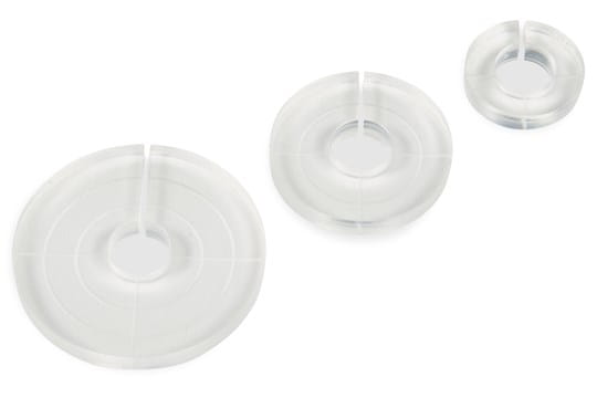 These Echo-quilting Clips have been especially developed for quilting with the Adjustable Ruler Foot #72 and Ruler Foot #96. The Echo-quilting Clips are made of scratchproof and anti-static plastic; therefore, the surface remains scratch and lint free. Easily clip the transparent Echo-quilting Clips on the sole of the Ruler foot.