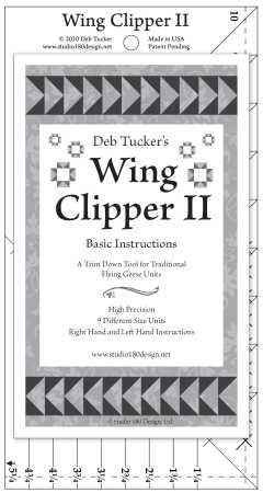 An in between tool that trims down Flying Geese units in 9 additional size not covered with the Wing Clipper 1. Many of today’s best designers like to create quilts and patterns with Flying Geese units that are based on finished heights of 1/4in and 3/4in increments. They are sometimes just the right size for a particular design and having a tool that gives you the opportunity to make them quickly, and then clean them up with high precision, is a welcome addition to many quilter’s tool box. By supplementing the Wing Clipper 1 with this tool, you will have 19 different size options for traditional Flying Geese units. Absolutely the best set of tools on the market! Color: Clear Made of: Acrylic Use: Quilting Template Size: 5.25in x 10in