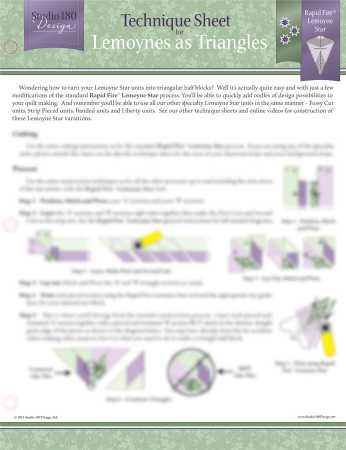 Master the art of transforming LeMoyne Star units into triangle half-blocks with this comprehensive technique sheet. This guide is perfect for quilters looking to expand their repertoire with intricate designs. It provides step-by-step instructions for creating various LeMoyne Star variations, including the Liberty Star and the Fussy Cut Star, ensuring you can achieve precise and beautiful results. The sheet includes visual aids with detailed diagrams to guide you through each stage of the process, from cutting fabric to assembling the final block. Whether you're a seasoned quilter or a beginner, this technique sheet will enhance your quilting projects with its detailed guidance and creative possibilities. Technique Sheet for LeMoyne Star as Triangles Includes step-by-step instructions Features variations like Liberty Star and Fussy Cut Star Provides detailed diagrams for each step Suitable for all skill levels Enhances quilting projects with intricate designs