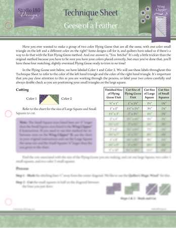 Have you ever wanted to make a group of two color Flying Geese that are all the same, with one color small triangle on the left and a different color on the right? Some designs call for it, and quilters have asked us if there’s a way to do that with the Fast Flying Geese method. And our answer is, “You betcha!” It’s only a little trickier than the original method because you have to be sure you have your colors placed correctly, but once you’ve done that, you’ll have those four matching, slightly oversized Flying Geese ready to trim in no time! Printed Paper Pattern Final Product: Quilt