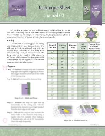 If you love jazzing up your stars as much as we do, this is one that you’re not going to want to skip! The Framed 60 Technique Sheet allows you to create a Star 60 unit with a contrasting band of color added around the outside edge of the diamond. Sew six together and you will get a beautiful framed star, but you can also use them in conjunction with other 60° units to create really interesting looks.