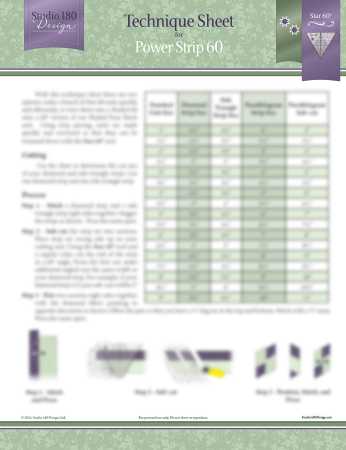 Do you need to make a bunch of the same type of Star 60 units? Then Power Strip 60 is the technique sheet that you want. It is a strip piecing method similar to Shaded Four Patch for making many Star 60 units at one time. This method will speed up the piecing so that you can quickly get through all those same color star 60 units you need. If you need to add a companion triangle to the end of your Star 60 Unit then with this technique you can. Instead of trimming them to perfection stitch them to a parallelogram and cut them apart to make Star 60 units with Companion triangles on them. The unit sizes listed in the chart are the finished size of the Star 60 unit and corresponds in sizing to what is in your Star 60 instruction set. Printed Paper Pattern Finished Size: Various Final Product: Quilt Technique Used: Standard Machine Sewing Template Sold Separately Skill Level: Confident Beginner