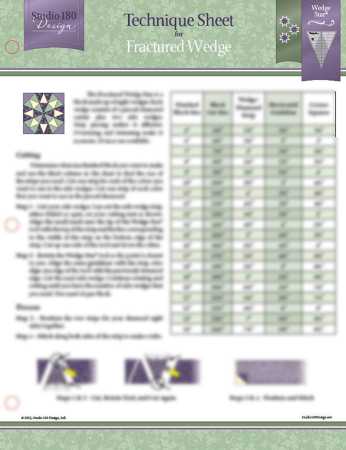 Add a little sparkle to your Wedge Star blocks with the Fractured Wedge! The block is made up of 8 wedges where each wedge consists of a pieced diamond center plus two side wedges. Strip piecing makes the construction efficient with twenty block sizes available. Printed Paper Pattern Finished Size: Multiple Final Product: Quilt Technique Used: Standard Machine Sewing Skill Level: Intermediate