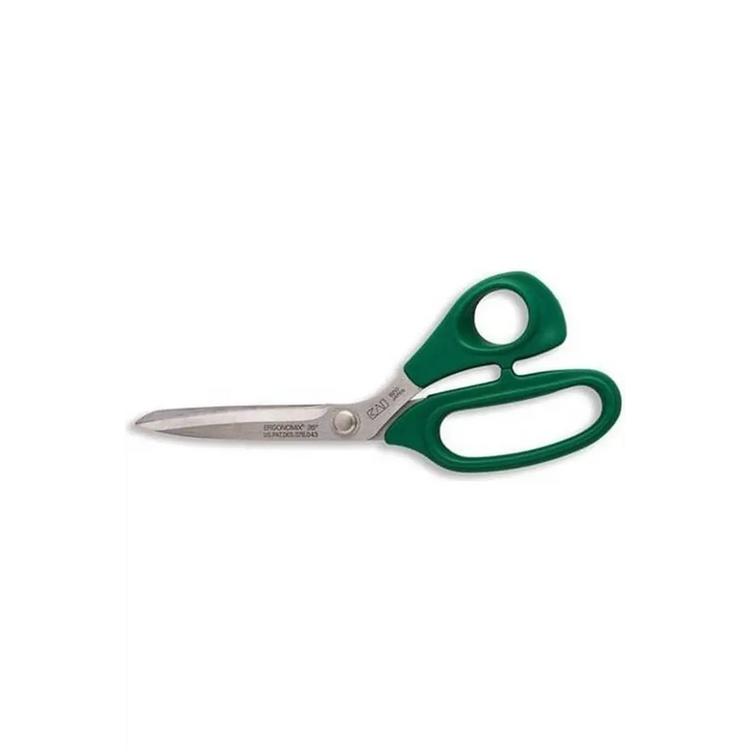 The Kai Ergonomix Bent Shears have ergonomically soft handles which allow fatigue-free cutting on all types of fabric. It cuts multiple layers of denim with ease while trimming cottons without any fabric slippage. They are made from hardened stainless steel. Measures 8 1/4".