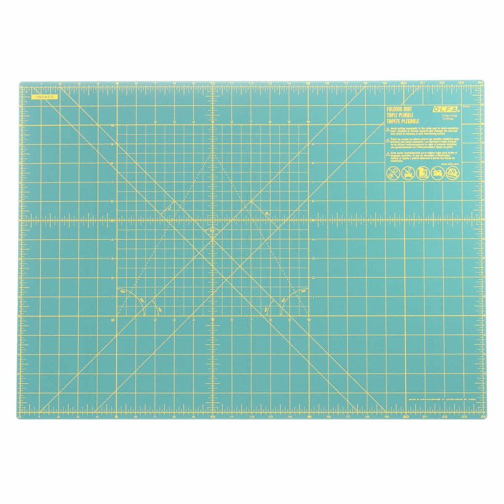 Olfa's 17" by 24" Folding Cutting Mats are both durable and ideal for use with rotary cutters and utility blades. The Folding Cutting Mat has wavy fold lines that will create a smooth, gapless seam when laid flat. The Folding Cutting Mat is 2.5mm thick, and since it folds up for easy portability, it is ideal for sewist on the go.