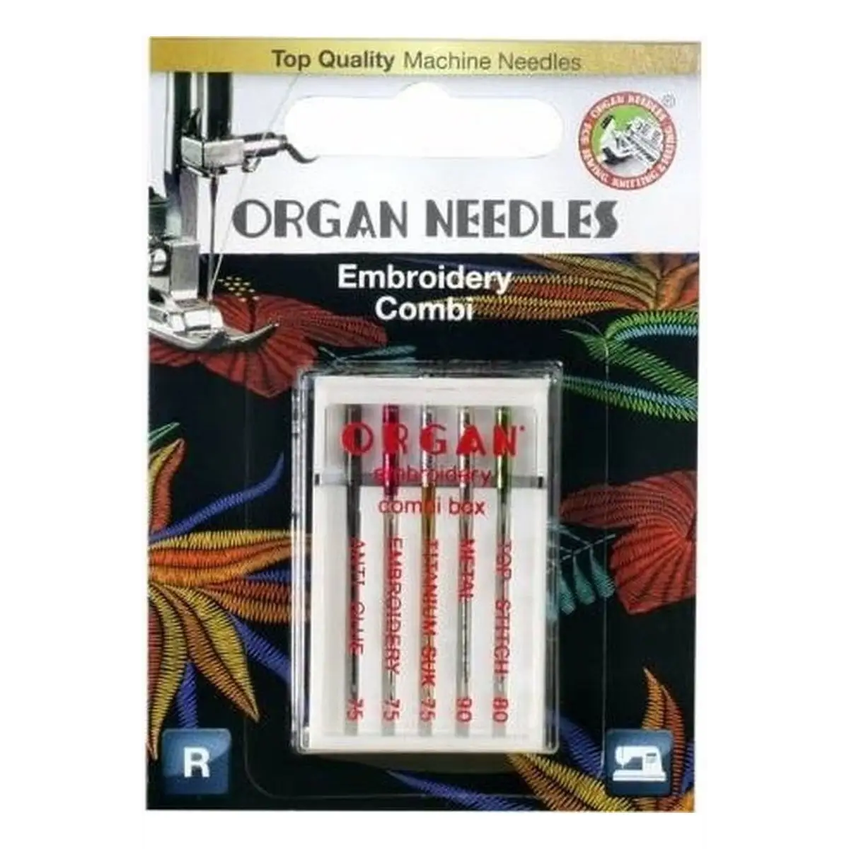 Organ Brand Domestic Machine Needles - System: Embroidery Assorted Sizes 5pk