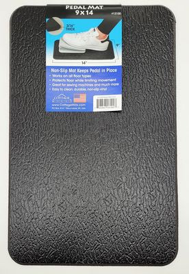 9” x 14” x 3/16” – Perfect size for most sewing machine foot control. Non-slip mat keeps pedal in place. Great for sewing machines and much more. Easy to clean, durable, non-slip vinyl.