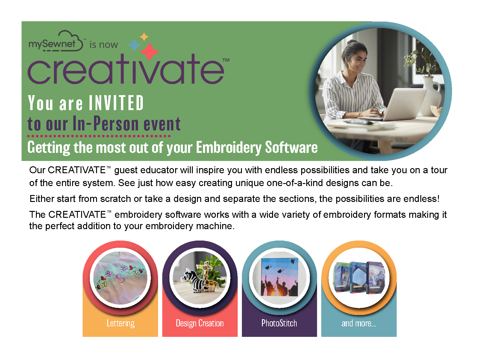 Take a tour through the Creativate Ecosystem – the full creative world that supports your sewing and embroidery: