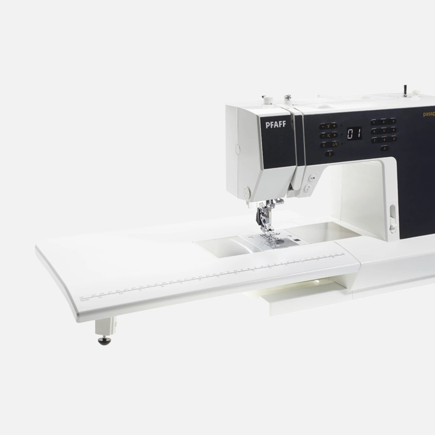 Designed for the PFAFF passport™ 2.0 and passport™ 3.0, this extension table has a printed ruler with both centimeters and inches so needed measurements are close at hand. This sturdy extension table allows you to convert the free arm to an extended flat bed to easily support large projects.