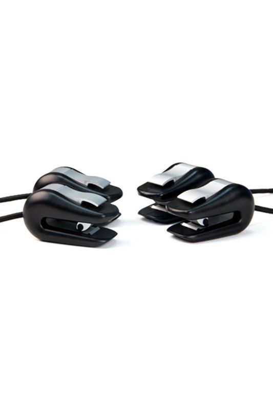 Attach these bungee clamps to any hand or machine quilting frame to stabilize quilts for sewing. The Quilting Frame Bungee Clamps set includes four clamps that have a 60in reach each. The small clamps are easy to attach and remove.