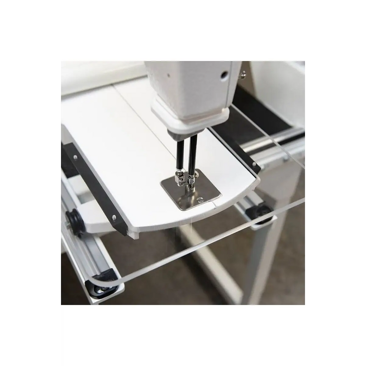 Provides additional support when using long arm rulers. Stops the ruler from slipping and getting caught under the presser foot.