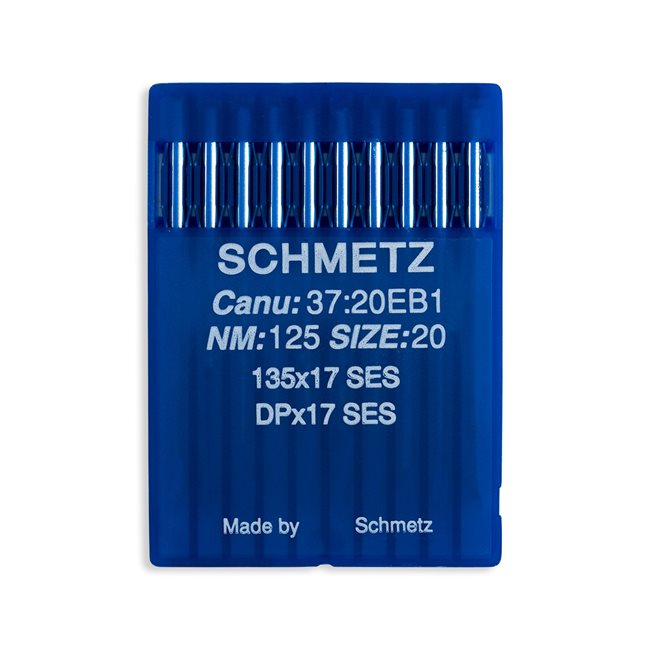 An SES Schmetz needle is considered a light ball point needle. It is slightly more pointed than a SUK needle and is recommended for light-to-medium knits, medium woven fabrics, and jersey materials. Schmetz ball point straight stitch needles feature a more rounded tip and prevent cutting of fabric, snagging and large pin holes (good for knits). Available in a variety of sizes. 10 per package.