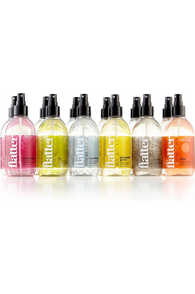 xSoak's Flatter Smoothing Spray is starch-free, relaxes wrinkles, and freshens fabric. This spray leaves your fabric feeling sleek, soft, and static-free. Spray your entire garment evenly and iron until desired stiffness is achieved. Flatter can also be used between washes to refreshen fabrics or to reduce and resist wrinkles. Soak Flatter Smoothing Spray is equipped with a soft mist sprayer for even distribution. Made from plant-derived and renewable ingredients, this spray will not flake, clog, or create residue. It is also easy on sensitive skin, biodegradable, phosphate-free, and dye-free. Choose from six scents: Celebration, Fig, Lacey Pineapple Grove, Scentless, and Yuzu.