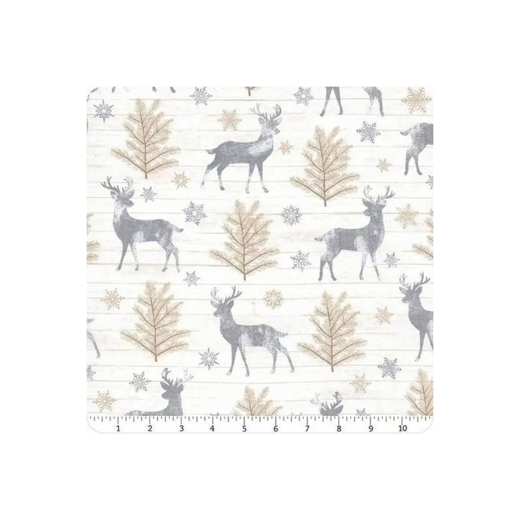 Timeless Treasures, Snow is Falling Collection - Rustic Reindeer Cream (Sold By 1/2 Meter)