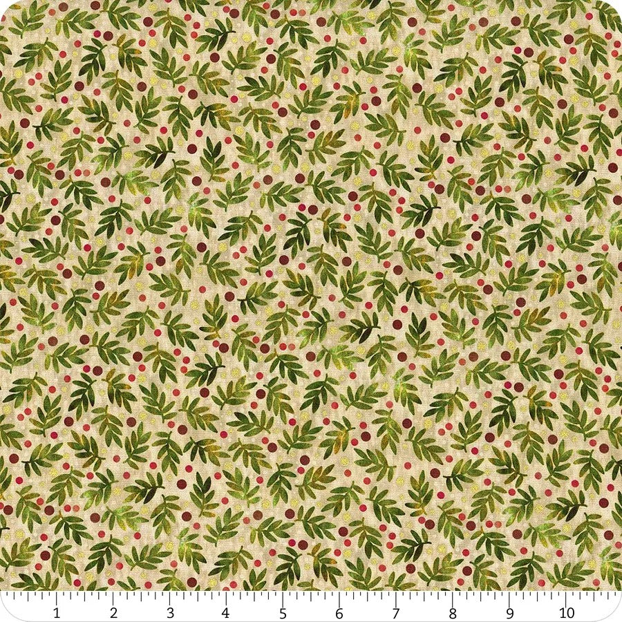 Winter Solstice II Beige Twigs Metallic Yardage (Sold By 1/2 Meter)