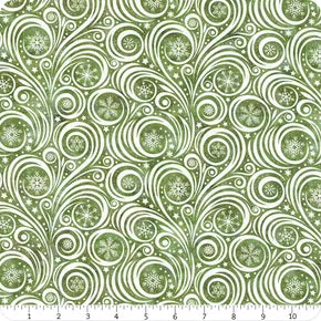 Winter Solstice II Green on White Snow Swirl Yardage (Sold By 1/2 Meter)